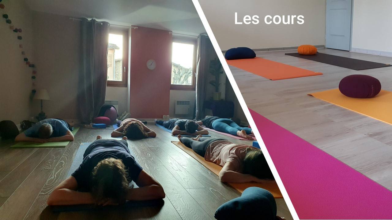 Le mot yoga nous vient du mot sanskrit « yug » qui signifie « union ». Par des prises de postures, des enchainements et des pranayamas (respirations contrôlées), nous harmonisons notre geste et notre mental grâce au souffle. Nous posons le mental afin de retrouver un état d’être. Nous captons cette énergie pour la diffuser dans tout le corps physique et apaiser ainsi les pensées. Le yoga permet de prendre du recul, de se donner du temps et d’être bienveillant avec soi-même. Nous devenons conscients de ce qui est. Le « prana », énergie vitale peut alors circuler.